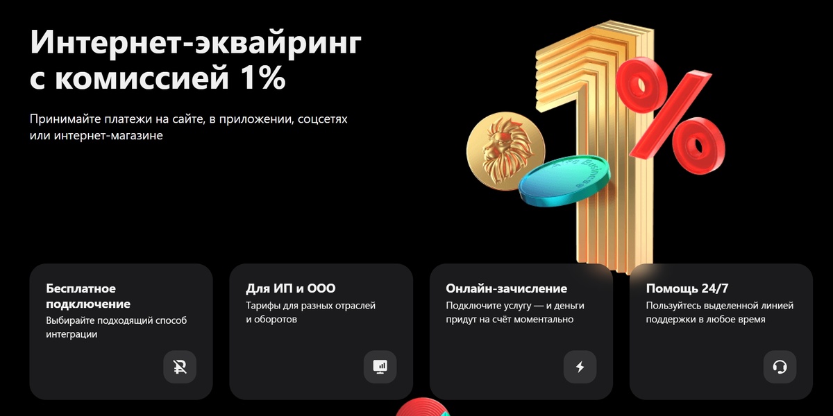 - Базовая ставка комиссии может начинаться от 1% от суммы операции при определённых условиях подключения.