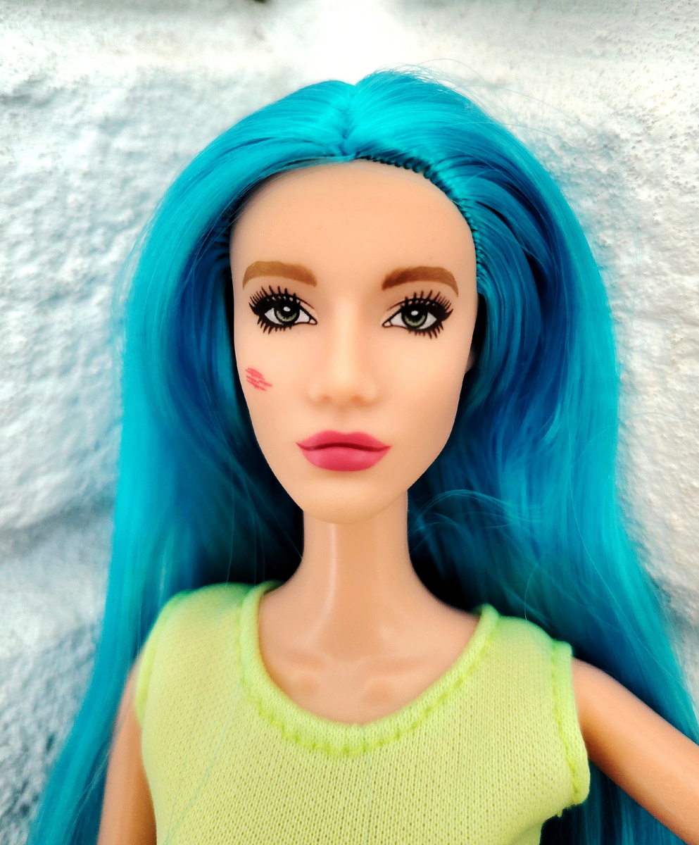 Всем привет 👋 Публикация в поддержку челленджа "Цветновласка": Кукол с цветными волосами у меня несколько, но для челленджа я выбрала только одну. Куклу Mia Boyka я приобрела ещё зимой в ДМ, польстившись на очень бюджетную цену (около 300 руб), сфотографировала на работе сразу после распаковки, и на этом всё 🤷 Хотелось создать для неё какой-нибудь особенный, яркий и дерзкий образ, но как-то всё руки не доходили. Буквально вчера я наконец пришила кнопки к тунике, сшитой уже довольно давно (в шитье на кукол я меньше всего люблю пришивать застежки к одежде). А ещё в кои-то веки я добралась до фотобокса и до моего любимого углового фотофона с чёрными кирпичиками. Одно к одному, и получила-таки Mia свою скромную, но фотосессию. Не то, что я задумывала для неё изначально, но за год с лишним в куклохобби я уже поняла за собой, что реализовываются мои задумки оооочень нескоро. Мне очень нравятся глаза этой девочки: выразительные, с грустинкой, очень тонко прорисованные. Вот такая он