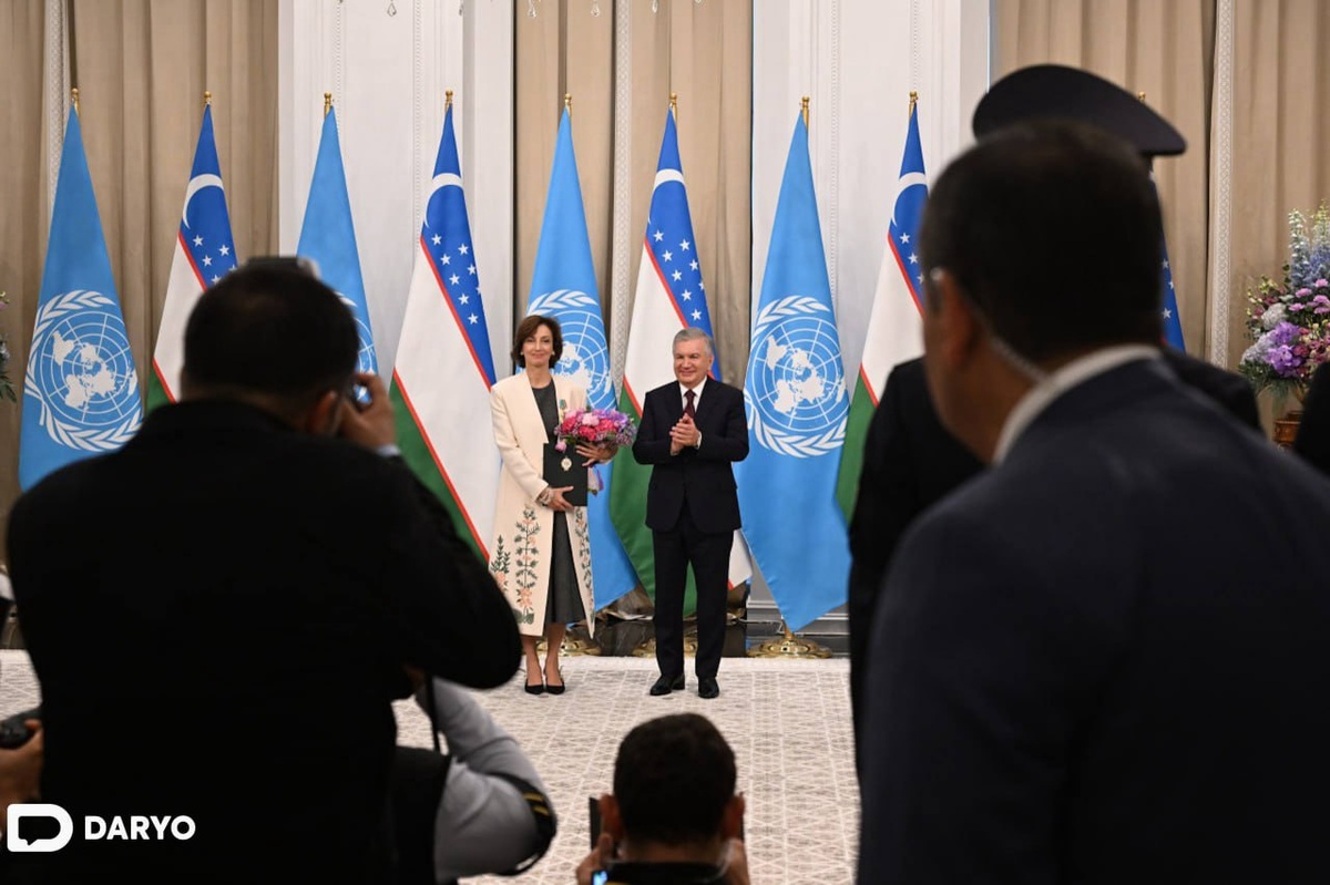 Shavkat Mirziyoyev YUNESKO bosh direktori Odri Azuleni “Do‘stlik” ordeni bilan mukofotladi Ushbu orden fan, ta’lim va madaniyat sohalaridagi aloqalarni rivojlantirishdagi katta xizmatlari hamda o‘zbek xalqining boy madaniy merosini keng ommalashtirishga qo‘shgan shaxsiy hissasi uchun berildi. @daryolive