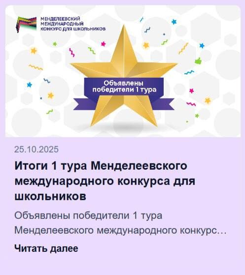 ПЕРВАЯ ПОБЕДА!!!!! 🧪 Ученица Михаила Юрьевича, под его научным руководством, победила в первом туре Менделеевского международного конкурса для школьников! Урааа!!! Поздравляем Лизу и продолжаем за нее «болеть»!🎉