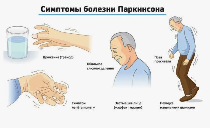 Это нарушение вызывает проблемы с движением, координацией, балансом тела и могут осложняться другими факторами, такими как депрессия, тревожность, агрессивность, проблемы со сном и мышлением (память, ориентация, восприятие), боли, утрата обоняния, расстройства речи, речь становится монотонной, тихой.