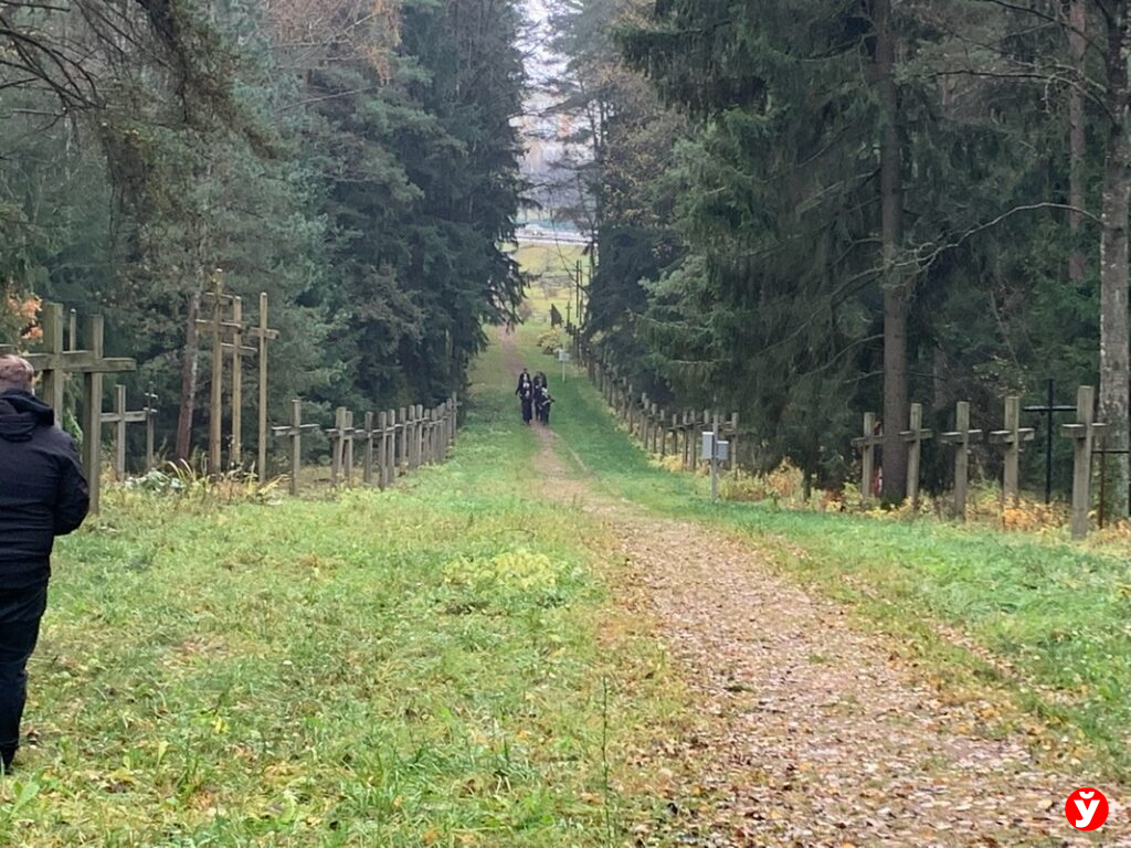 Дипломаты стран ЕС в очередной раз посетили урочище Куропаты, но не сказали зачем. В этот раз поляки к памятнику прокрадывались, видимо, на заре. Потому что утром 30 октября, когда журналист МЛЫН.BY был на месте, след дипломатических работников из страны-соседки давно простыл. А возле мемориала красовалась цветочная композиция в тонах польского флага с надписью «KUROPATY PAMI ĘTAMY», венок и лампады. Увы, что именно помнят в Польше о Куропатах — так и останется для всех нас загадкой. Но хочется отметить, что на живых цветах поляки явно сэкономили. Мы с коллегами из других СМИ остались ждать приезда других дипломатов. Напомню, в прошлом году они пришли только в час дня. Но сегодня диппредставители искренне порадовали, явившись в 9 утра. И сначала процессия со скорбными лицами свернула к польскому кресту и возложила цветы там. Среди людей в черном мы опознали представителей из Великобритании, Чехии, Венгрии, Румынии, Франции, Германии, Австрии, Нидерландов и Болгарии. Кстати, глава делег