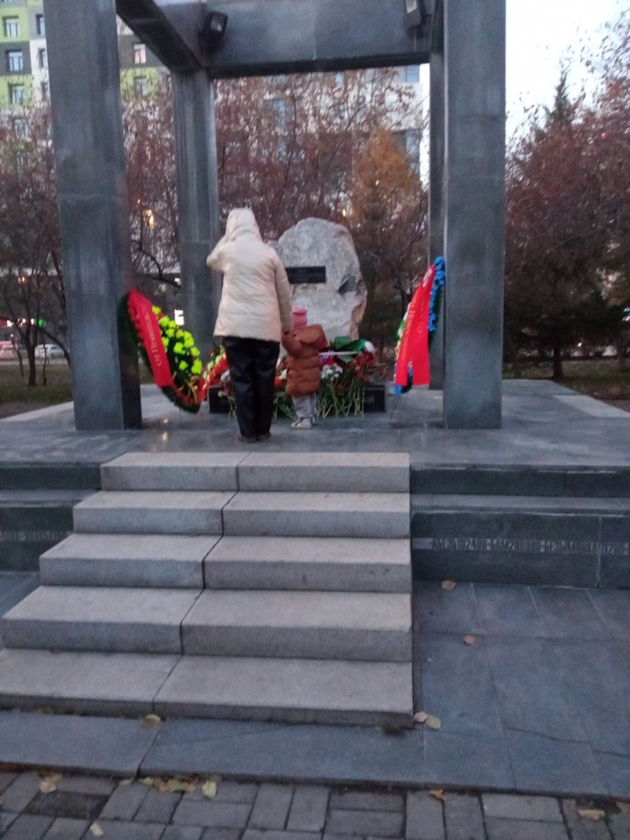 Возложили цветы к Памятнику жертвам политрепрессий в Нарымском сквере