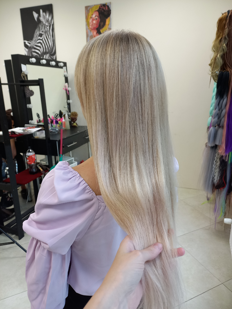 Она создаёт красивый подтон, нейтрализует желтизну и добавляет сияние, словно на волосы лёг фильтр мягкого света. 💛 Для блондинок это не просто уход, а способ сохранить цвет чистым, благородным и сияющим между окрашиваниями. 💫 Почему волосы нуждаются в тонировании? После осветления структура волос становится более пористой. Она легко впитывает всё — и пыль, и пигменты из воды, и следы укладочных средств. В результате холодный или нейтральный оттенок постепенно уходит, а на его месте появляется нежелательная желтизна.