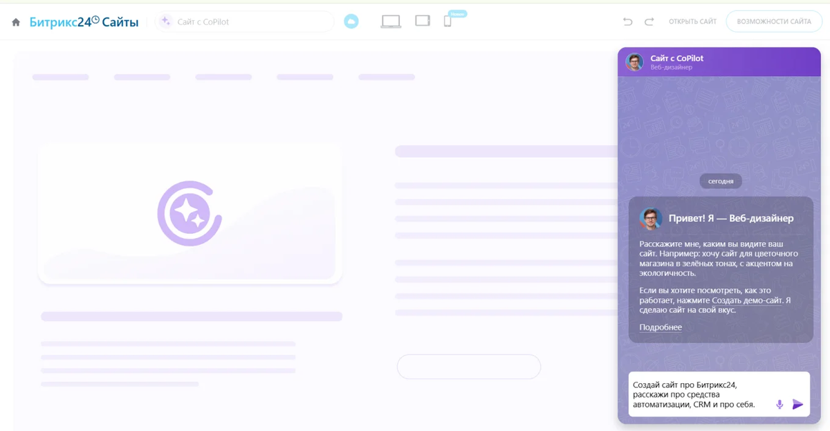“Обычные конструкторы сайтов — это компромисс между экономией и временем на обучение. Но что, если можно сохранить бюджет и избежать сложностей? Основываясь на данных исследования Битрикс24, мы представляем подборку из шести интеллектуальных конструкторов, которые кардинально меняют опыт создания сайтов. Их ключевое отличие — глубоко интегрированный искусственный интеллект, способный буквально понимать ваши идеи и потребности.”, - Максим Дмитриев, руководитель проектов RDN Group.