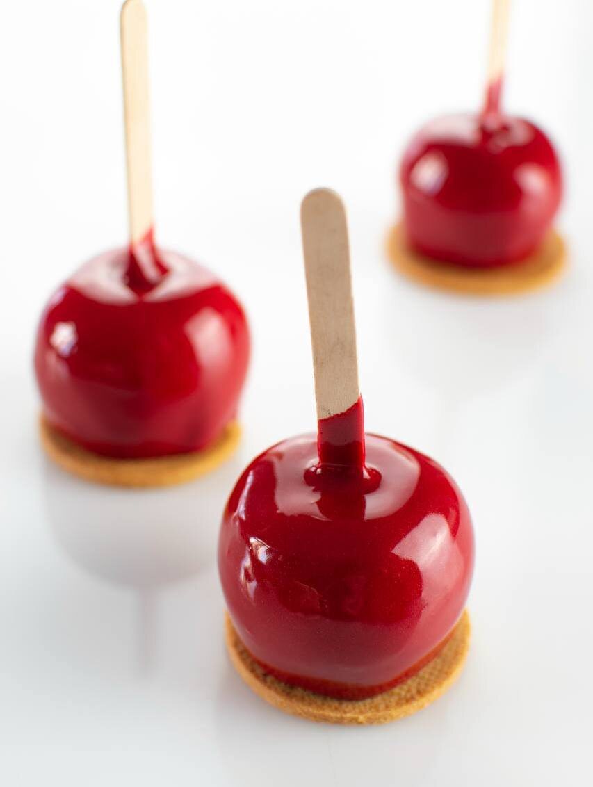 Кстати, еще один вариант, что можно сделать с яблоками — карамельное яблоко. Оно выглядит как настоящее сказочное яблоко, с идеальным глянцем и ровной формой 🍎 Вдохновилась я им, когда была с дочкой в Диснейленде: там эти яблоки повсюду — в витринах, тележках, на прилавках. Они манили своим блеском, но внутри, увы, оказалось мягкое яблоко и толстый слой карамели🥲 Я решила сделать свою версию — не просто красивую, а по-настоящему вкусную. Внутри ⬇️ — пряная яблочная начинка с корицей и мускатным орехом — нежный карамельный взбитый ганаш — а сверху корпус из шоколада и зеркальная глазурь, которая не липнет к рукам. В уроке я показываю весь процесс — от приготовления начинки до сборки и покрытия глазурью. 📌«Карамельное яблоко на палочке» Если хотите удивить не только вкусом, но и внешним видом — то это идеальный вариант