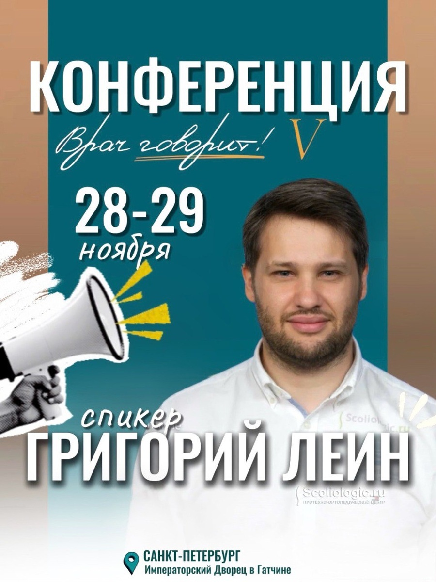 28 ноября Григорий Аркадьевич Леин – врач травматолог-ортопед, к.м.н., генеральный директор и соучередитель протезно-ортопедического центра «Сколиолоджик.ру» – выступит в Санкт-Петербурге на конференции «Врач говорит!».
