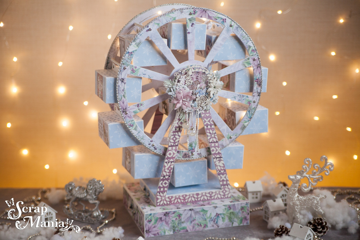 Салют, самые самые! С вами Юля Кубышева. Хотите прокатиться со мной на колесе обозрения? Сегодня для вашего супер Вдохновения я показываю свое новое изделие - Адвент-календарь из коллекции "Новогодние гномы". Подарки, свет, ящички для хранения предметов... Поехали кататься? Представьте себе канун зимних праздников, ведь декабрь наполнен ожиданием чуда, а на вашем столе, а может быть, рядом с красавицей-елью, стоит удивительное изделие ручной работы. Это не просто адвент-календарь, это изысканное колесо обозрения, в котором 32 коробки-кабинки хранят маленькие секреты. Каждая коробочка пронумерована и готова подарить вам частичку волшебства в течении всего декабря. Каждая циферка уникальна, со своим особенным рисунком: где-то простые зимние узоры, а где-то, глядя на картинки, можно придумать даже сказочную историю, и еще больше открыться этой атмосфере. Для вас каждый день будет маленьким круизом на волшебном аттракционе! Колесо обозрения выполнено аккуратно, детализированно, на совесть.