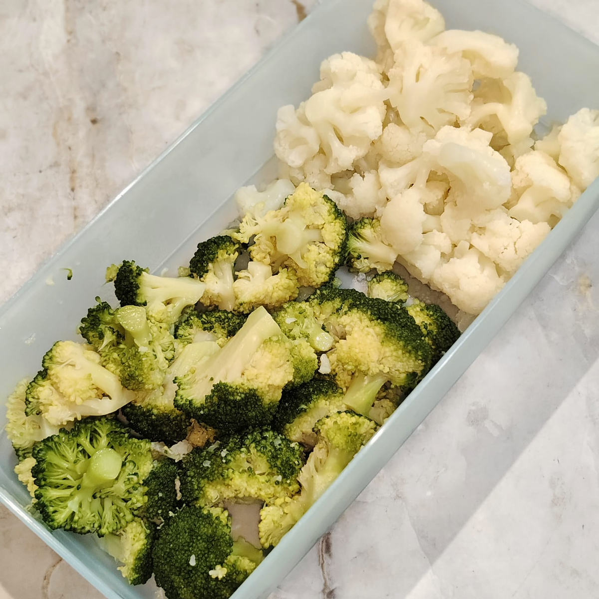 Доброе утро! Овощное рагу это не ново. Конечно, всем известны популярные кабачковые и баклажанные рагу. Но это не совсем они. В санатории мне очень хорошо подходил ужин, состоящий из мяса или рыбы и овощного рагу на гарнир. И содержало это рагу 2-3 вида овощей и не содержало помидоры. Этим и привлекло, в этом и новизна. В кабачковой и баклажанной икре составляющих больше - лук, морковь, перец болгарский, кабачок или баклажан и помидоры = 5. И кислоты не хочется в рагу, особенно вечернем. Поэтому я попробовала новые варианты, в которых соединяю не более 3х видов овощей и не добавляю помидоры. И для ЖКТ это легче, проще переваривать несколько видов овощей, вместо 5ти и сочетания можно составить по хорошей переносимости и сочетаемости. 1. Микс цветной капусты и брокколи Капусту цветную и брокколи приварить минут 5, брокколи обдать хоолодной водой, чтобы сохранить цвет. Можно отварить кочаны целиком и потом разобрать на соцветия, так будет меньше мусора. Это вообще отличная заготовка Мож