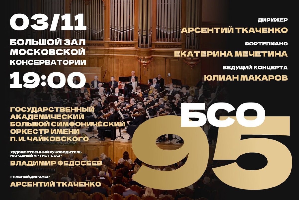 Торжественным вечером в Большом зале Консерватории завершится московская часть цикла концертов к 95-летию БСО