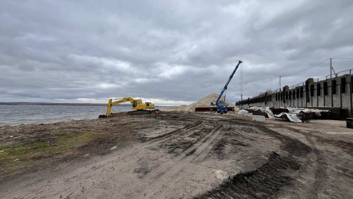 В поселке Юрино начались работы по укреплению береговой линии для строительства причала