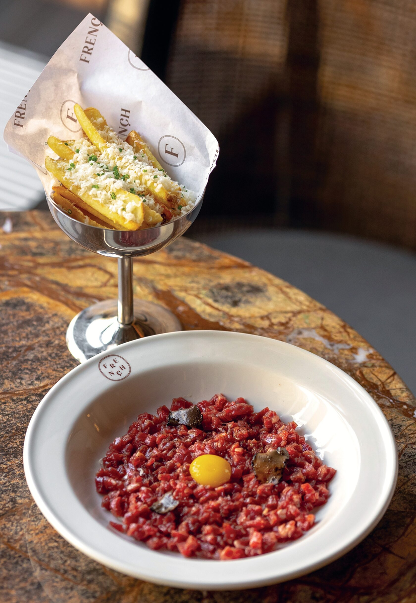 Тартар из говядины, картофель фри, трюфельный соус, пармезан — классический вкус, который невозможно отделить от атмосферы парижских бистро.