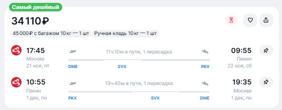 ✈️Москва - Пекин (Китай), туда и обратно с пересадками в Екатеринбурге, за 34100 рублей 21 ноября - 1 декабря - https://checkintime.ru/s8ug 🏖 Поиск туров | ✈️Авиабилеты