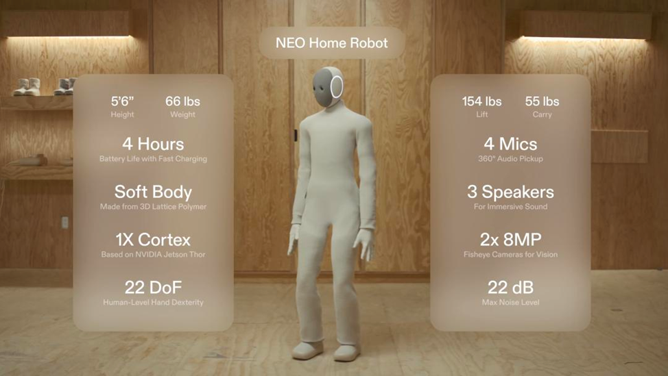 - Сегодня: NEO — это «первый бытовой гуманоид для ранних энтузиастов». Он способен на полезные действия, но двигается медленно, многое доучивает, часть сценариев — с участием операторов.