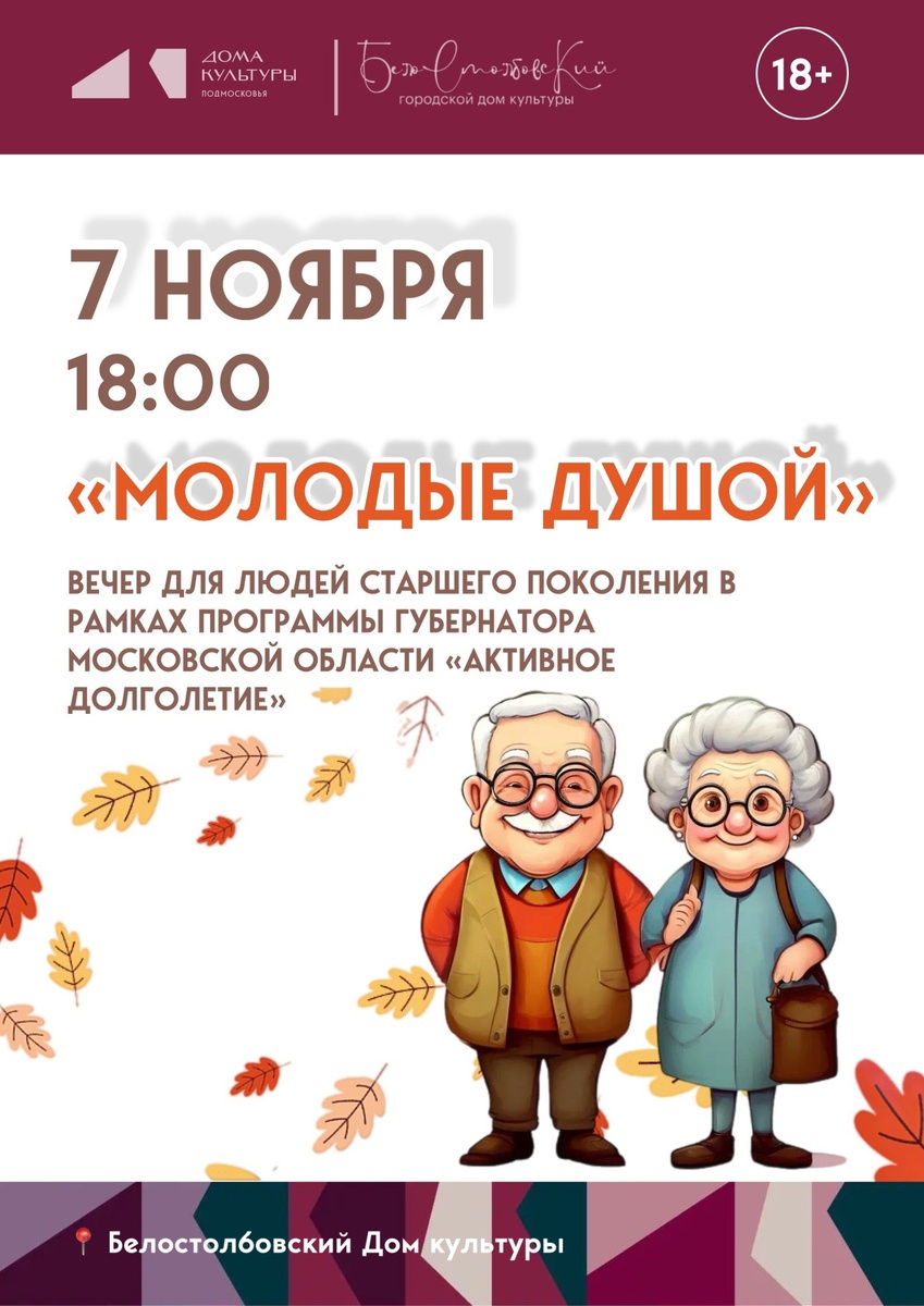 ✨ Приглашаем всех желающих провести вечер за приятными беседами, веселой музыкой и танцами🌸 🚫 Возраст: 18+ 📆 07.11.2025🕒18:00 🏢 Белостолбовский городской Дом культуры (ГДК) 📍 г.о.Домодедово, мкрн.Белые Cтолбы, ул. Авенариуса стр. 1а ✅ Мероприятия Домодедово https://dzen.ru/id/66f10385cc4c5a16f7b5fb02 http://vk.com/domodedovo_events http://dzen.ru/domodedovo_events