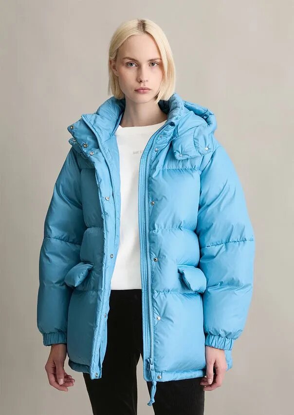 Когда за окном пасмурно и бело, самое время добавить в свой гардероб цвета, который напомнит о летнем небе и подарит настроение даже в самый холодный день. Наш герой — пуховик насыщенного голубого оттенка.