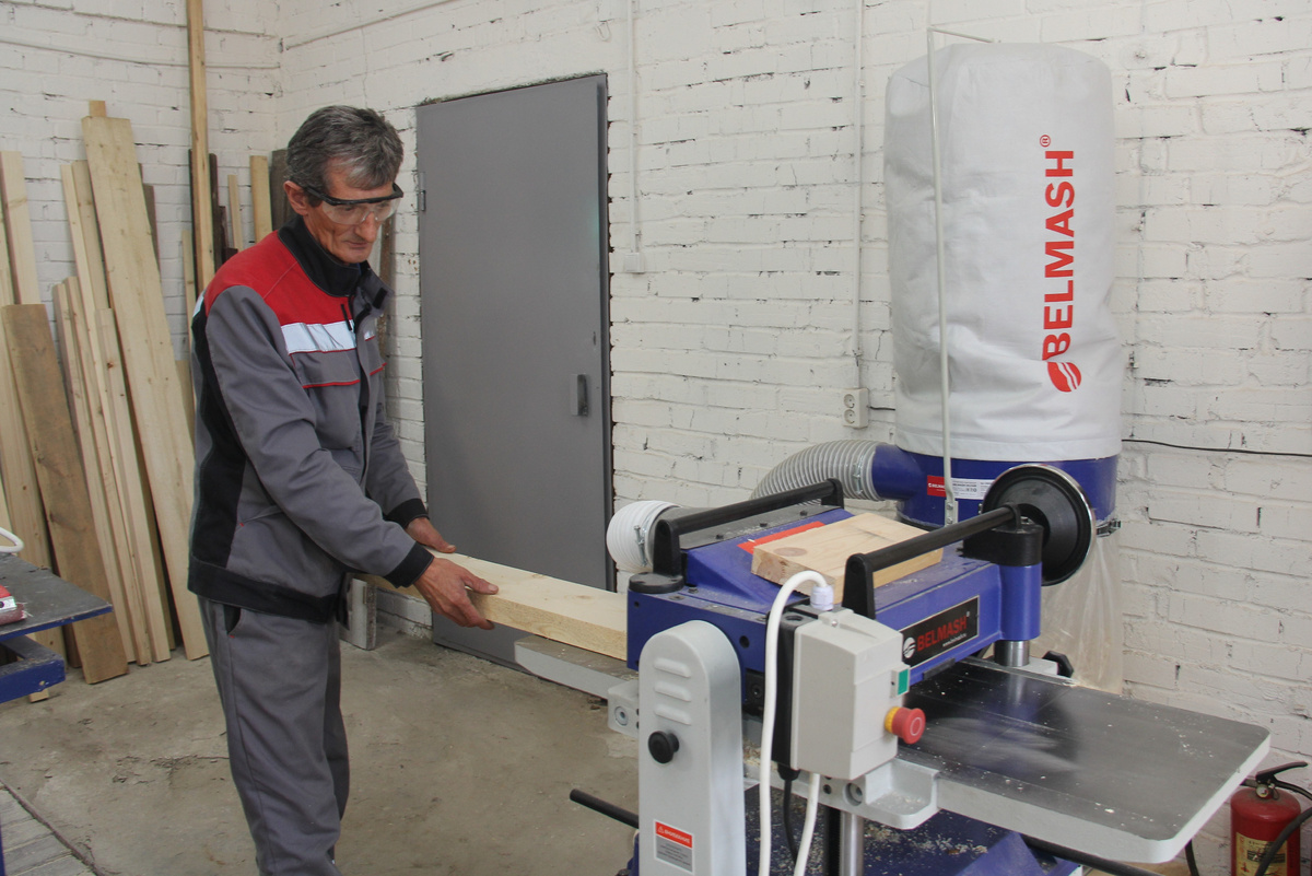 Руководство Центра предложило главе округа Юрию Шулико создать собственную мастерскую. Идею поддержали и выделили дополнительные средства. На них закупили профессиональное оборудование: рейсмусный станок за почти 200 тысяч рублей, который строгает доску со всех сторон, циркулярку для распила и отрезной станочек. Часть инструмента, пока не смогли приобрести всё необходимое, Виктор Васильевич принёс из дома. Благодарны ему за понимание.