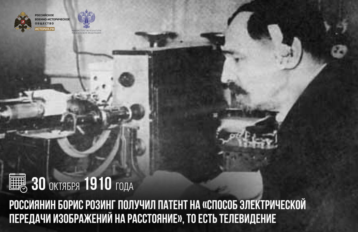 30 октября 1910 года россиянин Борис Розинг получил патент на «Способ электрической передачи изображений на расстояние», то есть телевидение Розинг со своими исследованиями совершил прорыв в сфере передачи изображения и заложил фундамент для всех последующих разработок. Уже спустя год, в 1911-м, усовершенствованное телевизионное устройство получило патенты в России, Англии, Германии и США. Сам изобретатель был уверен, что технология передачи картинки на расстояние получит широкое распространение в будущем, и оказался абсолютно прав. Сегодня изобретением Бориса Розинга пользуется едва ли не каждый человек на планете. #памятныедаты_ИсторияРФ Подписаться на История.РФ