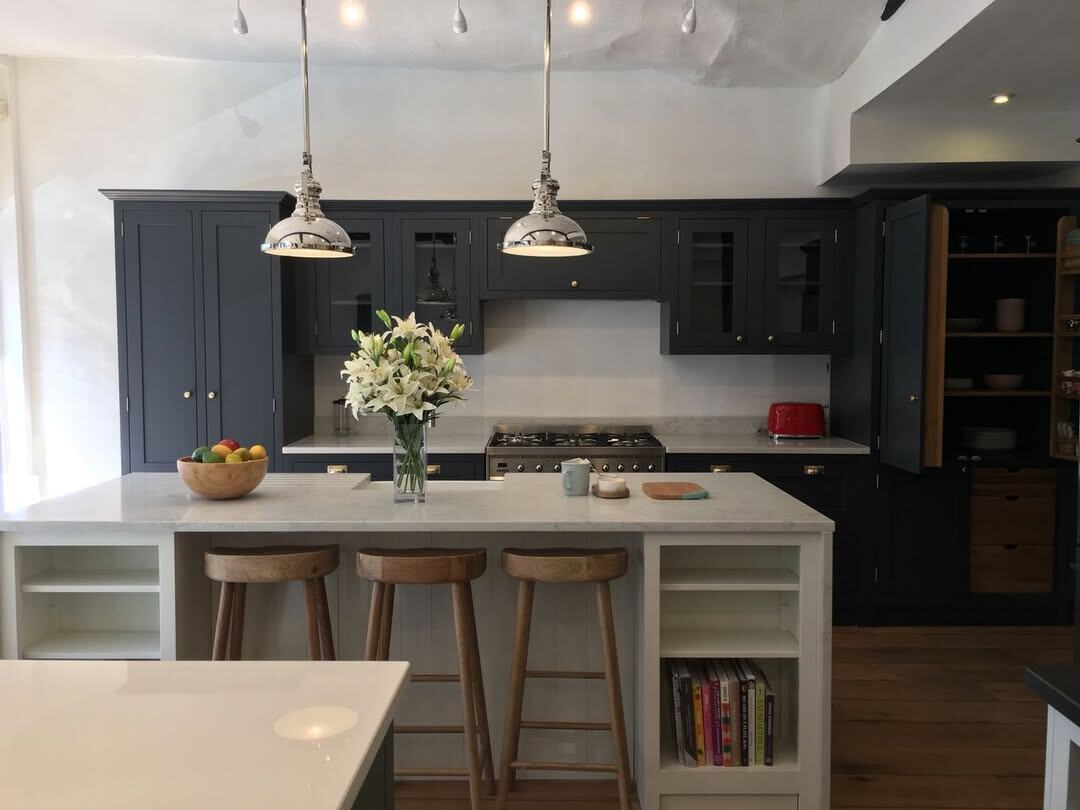 Для любителей более выразительных решений фасады насыщенных изумрудных или сапфировых оттенков внизу можно сбалансировать более нейтральными верхними модулями в теплом беже или сливовом. Богатая база привносит драму, а сдержанные верхи не дают композиции стать слишком тяжелой. Здесь смелый рисунок каменной столешницы может добавить еще один слой интереса, не перегружая общий вид.