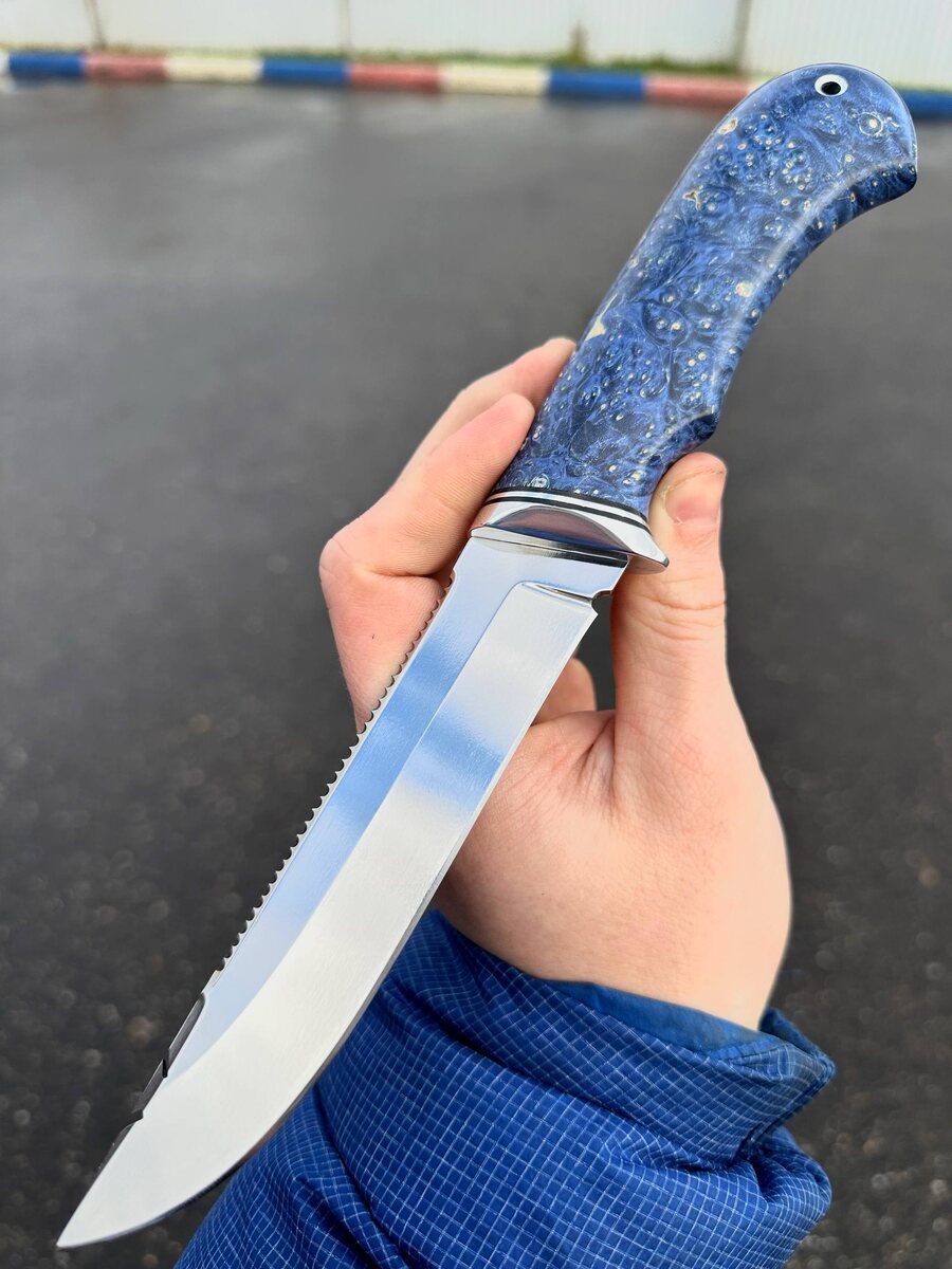 📸 *Свежий улов достоин лучшего инструмента! В наличии — нож "Рыбак" от Кузницы Назарова В.В. 🔹 Клинок: кованая Х12МФ (HRC 61-62) — идеальный баланс твёрдости и износостойкости, подходит для активной рыбалки и ежедневной работы. 🔹 Серрейтер на обухе — удобно чистить рыбу. 🔹 Рукоять: яркий, надёжный стабилизированный кап клёна в редком фиолетовом исполнении — удобно лежит в руке, не боится влаги и времени. 🔹 Заточка держится долго, нож не требует сложного ухода — даже после суровой экспедиции. В комплекте — ножны. Хотите особый стиль? Сделаем формованные кожаные ножны из кожи растительного дубления (+8000 руб.) 💰 Цена ножа с ножнами:9935 руб, со скидкой: 8.440 рублей. 📲 Для заказа: @Nazarklinokbot | Тел. +79101343831 (WhatsApp)