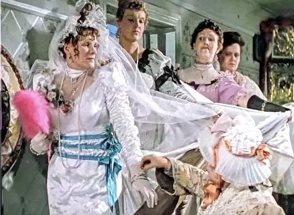 Мы часто коллекционируем образы из голливудских фильмов. Но сегодня хотим вспомнить самые яркие образы из российского кино, которое переживает эпоху Возрождения. «За двумя зайцами», 1961 год Маргарита Криницына, в роли Прони. Символ всех невест, которые переборщили с украшениями и прической! Обожаем этот фильм! В нашей подборке мы также упомянем несколько фильмов и сериалов из современного кинематографа. «Алиса в стране чудес», 2025 год Анна Пересильд, в роли Алисы. «Кавказская пленница, или Новые приключения Шурика» (1967) Наталья Варлей, в роли Нины. Зиночка, «Иван Васильевич меняет профессию» (1973) Наталья Селезнёва, в роли Зиночки. Катерина и Людмила, «Москва слезам не верит» (1979) Ирина Муравьёва, в роли Людмилы. Вера Алентова, в роли Катерины. Сериал «Елизавета», 2022 года. Юлия Хлынина, в роли Елизаветы. В сериале использовали костюмы, которые являются точными копиями исторических образцов. Больше всего запомнился платье в ярких зелёных оттенках. «Последний богат