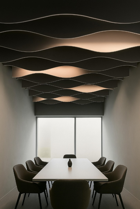 Наша компания занимается производством, поставкой и монтажом волнообразных акустических панелей из войлока торговой марки K&R Design. Волнообразные войлочные панели торговой марки K&R Design - это декоративные панели из плотного прессованного войлока толщиной 9 мм в форме плавных волн. Благодаря рельефной поверхности, которая создаёт мягкую игру света и тени, а также добавляет пространству динамику и глубину, волнообразные войлочные панели часто используется в дизайнерских проектах для создания эстетичных интерьеров. Войлок обладает способностью поглощать звуковые волны, тем самым снижая э уровень шума и эхо, что актуально для офисных пространств, переговорных, холлов отелей и гостиниц, ресторанов, кафе. Кроме того, наши потолочные волнообразные панели легкие и долговечные, что позволит долгое время не беспокоиться о замене. Также большим плюсом является быстрый и простой монтаж. Наши волнообразные панели не только улучшат звучание в помещении, но и станут эстетическим дополнением