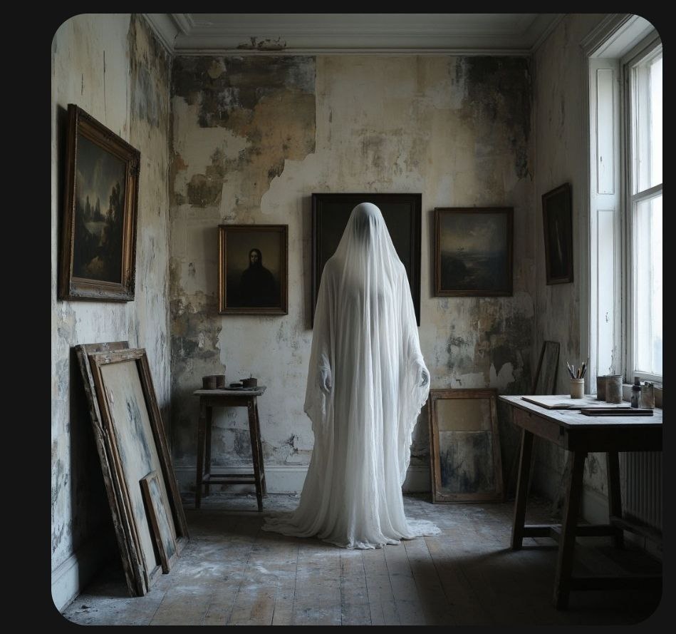 В старом доме на окраине города, куда даже почтальоны заходили с неохотой, поселился художник по имени Виктор. Дом достался ему по наследству от дальнего родственника — мрачное строение с покосившимися ставнями и скрипучими половицами, будто предупреждавшими: «Уходи». Виктор не верил в суеверия. Он видел в доме лишь источник вдохновения — обшарпанные стены, пыльные зеркала, захламлённый чердак. В первую же ночь он распаковал мольберт и принялся писать пейзаж за окном. Кисть скользила по холсту, пока за спиной не раздался тихий шёпот: «Не смотри…» Виктор обернулся — никого. Лишь тени колыхались в углах, словно живые. Он усмехнулся: «Ветер играет с занавесками». Но когда он вновь взглянул на холст, то замер. На только что начатом пейзаже проступили очертания лица — искажённого, с пустыми глазницами и разинутой в безмолвном крике пастью. Следующие дни превратились в кошмар. По ночам шёпот становился громче, превращаясь в хор голосов: «Ты наш… останься… нарис