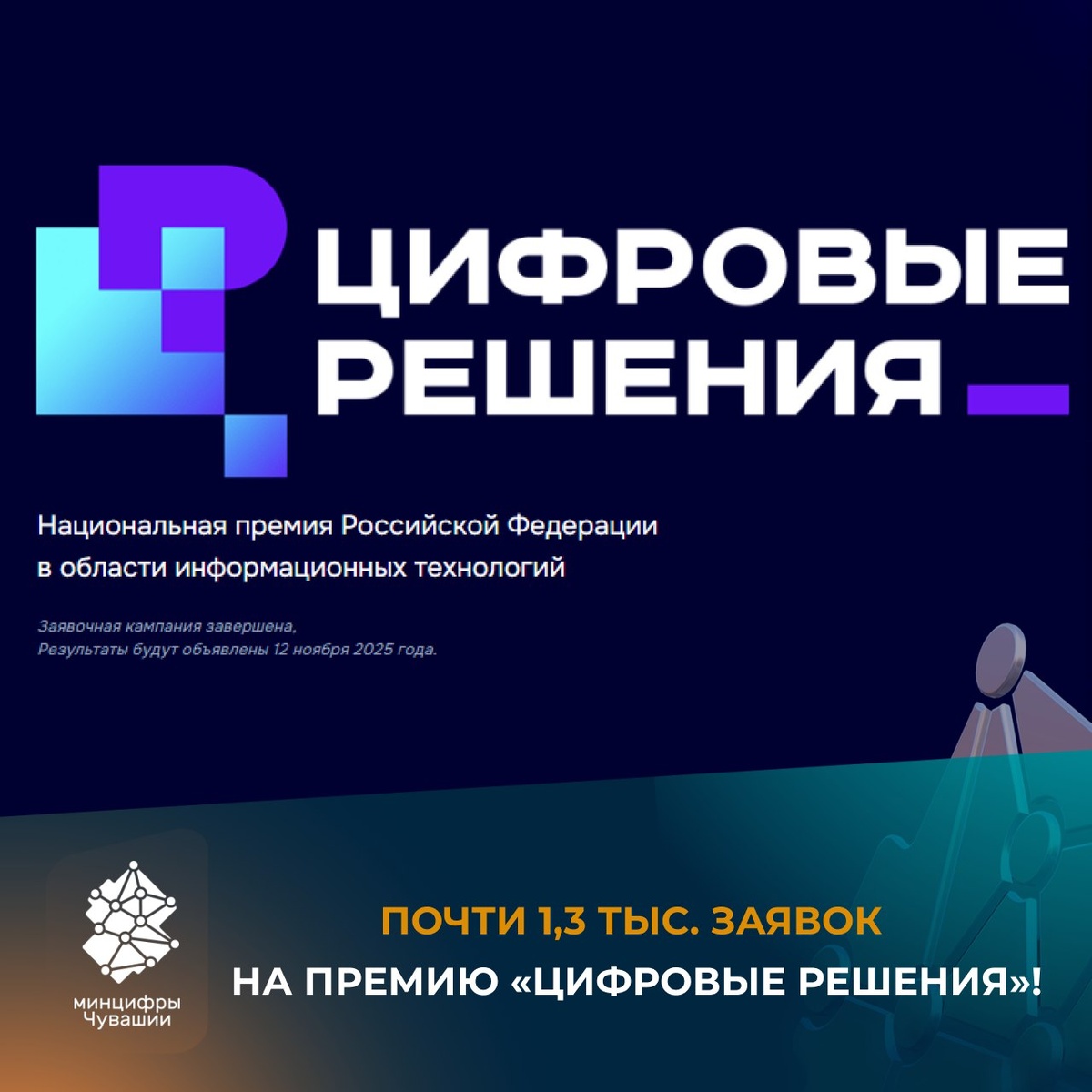 Более 850 компаний со всей страны подали почти 1,3 тысячи заявок на участие в ежегодной национальной премии «Цифровые решения», учреждённой Правительством РФ и Минцифры России. 🔹 Самые популярные направления — платформы и сервисы, искусственный интеллект, госуслуги. Среди других номинаций — связь и телеком, софт, кибербезопасность, кадры и обучение. 🏆 Победителей назовут на первом ИТ-форуме «Цифровые решения», который пройдет с 12 по 15 ноября в Национальном центре «Россия» (Москва). Форум станет главной площадкой для диалога между бизнесом и государством, обсуждения перспектив цифровой трансформации и обмена лучшими практиками. 📍 В программе — • более 90 сессий и 600+ спикеров • масштабная выставка цифровых решений • 8 тематических зон: от связи и ИИ до российского «железа» и кадров будущего Форум проходит при поддержке национального проекта «Экономика данных». #МинцифрыЧувашии #нп_экономика_данных ЦИФРОВЫЕ НОВОСТИ ЧУВАШИИ