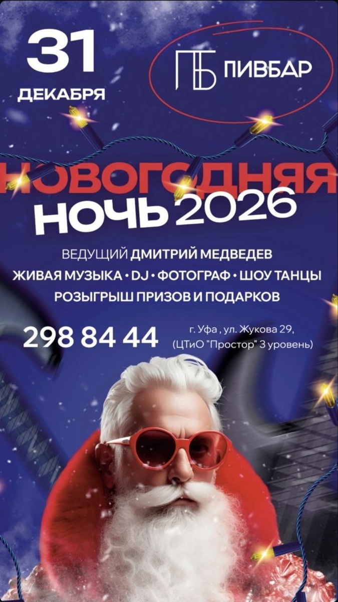 🎄Где провести Новый год или корпоратив в Уфе? Часть 2 ✔️Юна От 5400₽/чел ○ Новогодняя шоу-программа ○ Ведущий ○ Кавер группа, DJ ○ Фотограф ○ Розыгрыш подарков ✔️Дуслык От 6400₽/чел ○ Новогодняя шоу-программа ○ Ведущие: Усманов и Хрисанов ○ Праздничные блюда от шеф-повара ○ Живая музыка ○ Дед Мороз и Снегурочка ○ Розыгрыш подарков ✔️Reka От 6200 р ○ Новогодняя шоу-программа от топ ведущего ○ Кавер-группа «Royal Beat» ○ Танцевальный номер ○ Фотограф ○ Дед Мороз и Снегурочка ✔️Ветер От 6200 р ○ Шоу-программа от ведущего Азата Гайсина ○ Кавер-группа «Фольга» ○ Танцевальный номер ○ Фотограф ○ Дед Мороз и Снегурочка ✔️Премьер От 6200 р ○ Шоу-программа от ведущего Андрея Огнева ○ Фолк-шоу, живая музыка ○ Тематическая фотозона, фотограф ○ Дед Мороз и Снегурочка ✔️Башкирия От 6200 р ○ Шоу-программа от ведущего Булата Петрова ○ Кавер-группа «Раз, два, три», иллюзионист ○ Танцевальный номера ○ Фотограф ○ Дед Мороз и Снегурочка ✔️Тан От 3900₽/чел ○ Новогодняя фотозона ○ Отсутствие пробков