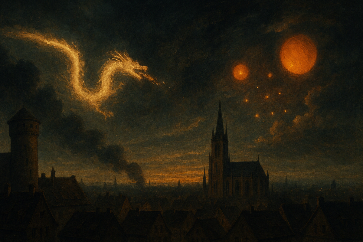 А вот европейцы, воспитанные на христианских образах, чаще говорили о «знамении», «наказании» или «битве добра со злом». И если в небе появлялись пересекающиеся лучи, кружащиеся огни и звуки — это сразу превращалось в «небесное сражение». То есть, странные явления не только наблюдали, но и наделяли глубоким смыслом, а метафора превращалась в хронику.
