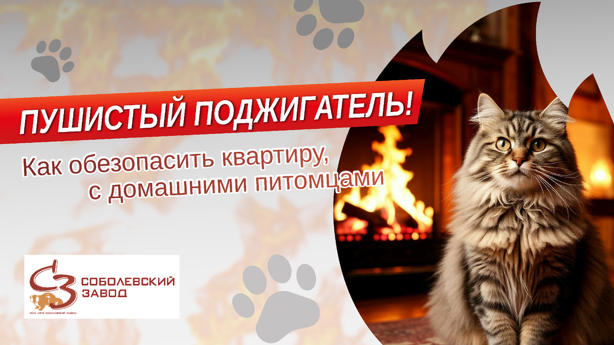 Домашние питомцы — это радость и компания, но их любопытство иногда может привести к пожару. Недавно в США в доме пожарного собака по кличке Колтон случайно устроила пожар: пёс стащил со стола литиевый аккумулятор и играл с ним, из-за чего появился дым, затем вспышка и пламя. Сигнализация сработала вовремя, хозяева вернулись домой, никто не пострадал, но ковер был уничтожен. В России также произошёл похожий случай: в Санкт-Петербурге кот прошёлся по сенсорной плите и случайно включил конфорку, что подпалило пластиковый аэрогриль. Пламя успели потушить жильцы, пострадавших нет, но техника пришла в негодность, а кухня закоптилась. Питомцы могут создавать опасность на кухне и в доме из-за своей любознательности и подвижности. Коты любят прыгать на столешницы и плиту, где могут задеть горячие кастрюли или включённые приборы, а собаки нередко тянутся к предметам на полу. Любопытные животные могут случайно сдвинуть свечу, зацепить провода или устройства, что приведёт к короткому замыканию. Д