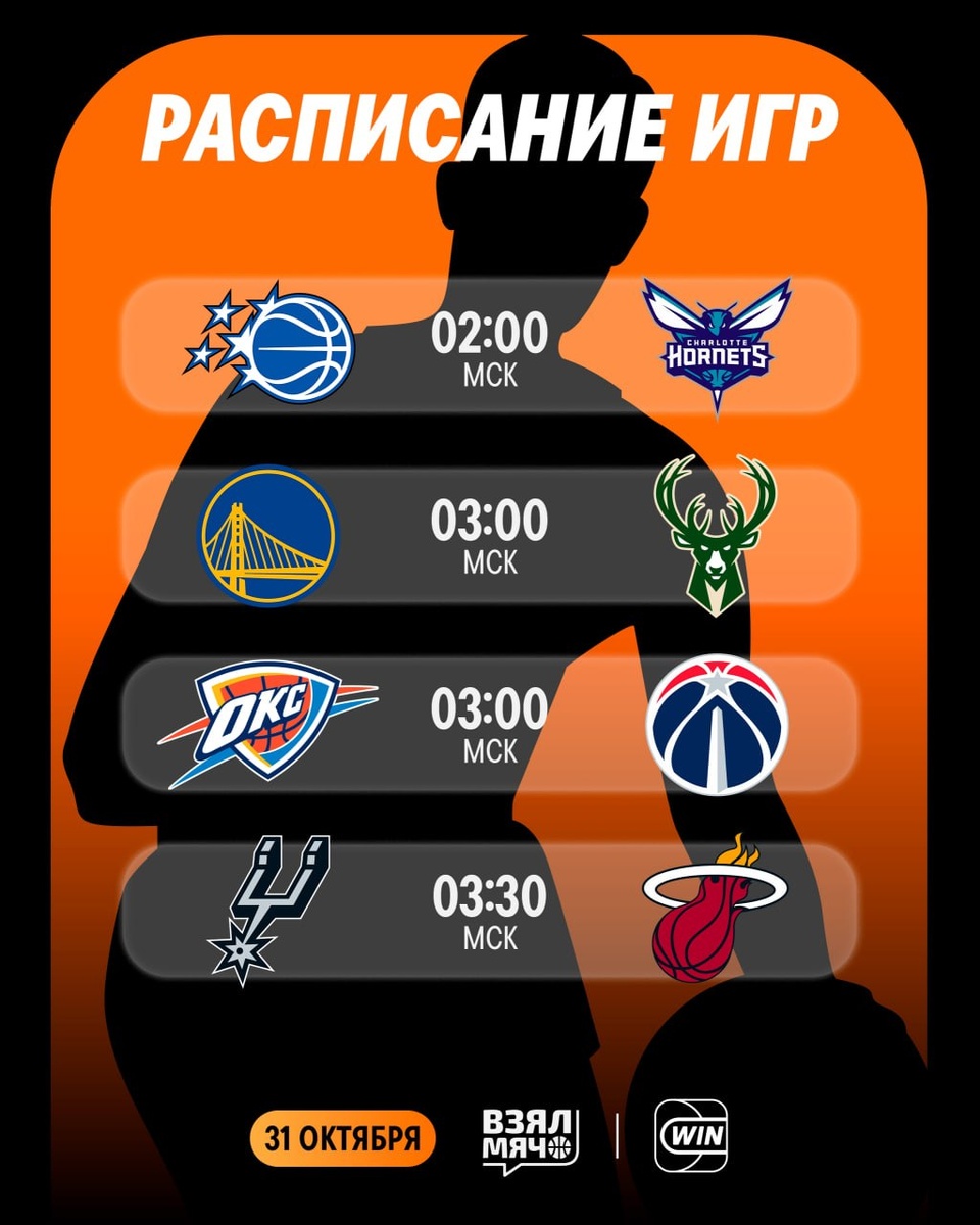 📺 Расписание матчей сегодняшней игровой ночи Какой матч будете смотреть? 02:00 | Орландо — Шарлотт 🎙 Андрей Протасов 03:00 | Голден Стэйт — Милуоки 🎙 Матвей Юдкин 03:00 | Оклахома — Вашингтон 🎙 Дмитрий Хамидулин 03:30 | Сан-Антонио — Майами 🎙 Марк Бурчаков 🏀 ПОДПИШИСЬ — ЗДЕСЬ ЖИВЁТ БАСКЕТБОЛ!