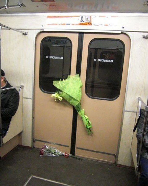 Метрополитен – это другой мир. Люди не просто перемещаются из одного пункта в другой, но и демонстрируют моду, отмечают праздники, встречаются и влюбляются. Достаточно спуститься в этот подземный мир, чтобы улыбнуться от вида прелестного кота или собаки, все бытовые тяготы, хотя бы на время, отодвигаются в сторону. №2. Хранилище букетов от отвергнутых ухажеров, старались, выбирали, а цветам место нашлось только в вагоне. №3. Этому пассажиру ничто и никто не испортит аппетит, удобно расположился, завистливые взгляды не помеха. №4. Песик мониторит свежие новости, вкусно пахнет газетка типографскими красками, не то, что смартфон со своими безликими контентами – ни вкуса, ни запаха. №5. Собралась компания, разложила скатерть самобранку, веселит народ пассажирский. №6. Кто сказал, что среди нас нет инопланетян, достаточно спуститься под землю, хорошенько присмотреться, они там обитают. №7. Плотненький мужчинка, соблюдает инстинкт самосохранения. Во время не поешь, накаченные бицепсы сп