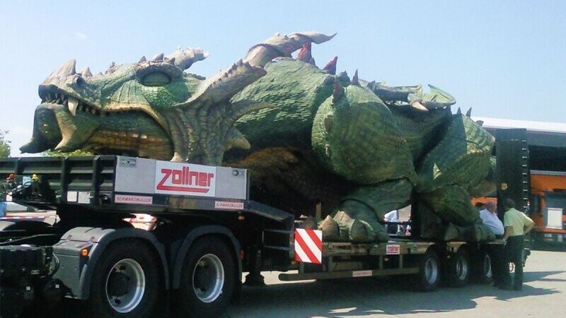 Робот не предназначен для промышленного применения (есть более эффективные способы поджаривать мясо). Он был построен для театрализованного шоу. Каждый год в немецком городе Фурт проходит спектакль “Further Drachenstich” (“Поражение дракона”), которому более 400 лет. Раньше роль дракона играли актёры, но город потратил 10 лет и миллионы евро, чтобы создать полностью механического заменителя.
