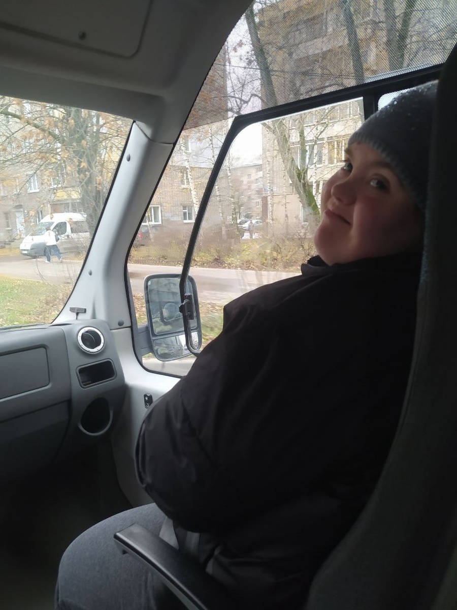 Сегодня Ирина, как взрослая, ехала в маршрутке на переднем сиденье рядом с водителем