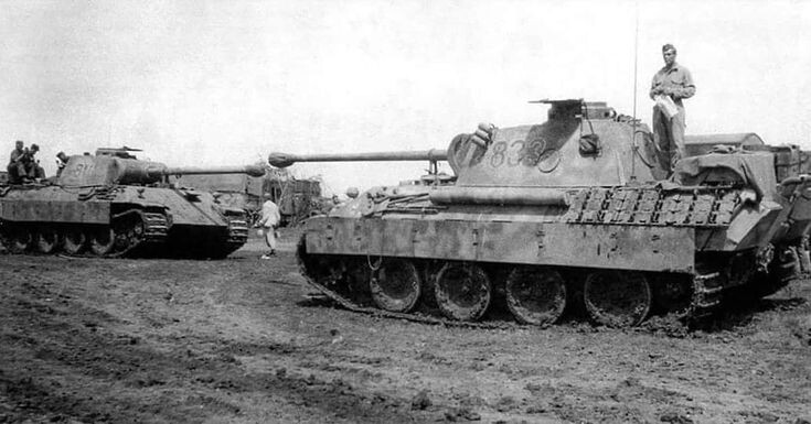 После боев на Курской дуге перевооружение "пантерами" танковых частей Вермахта шло со все возраставшей интенсивностью. 16 танковая дивизия получила новые танки "пантера" при переброске из Италии на Украину.