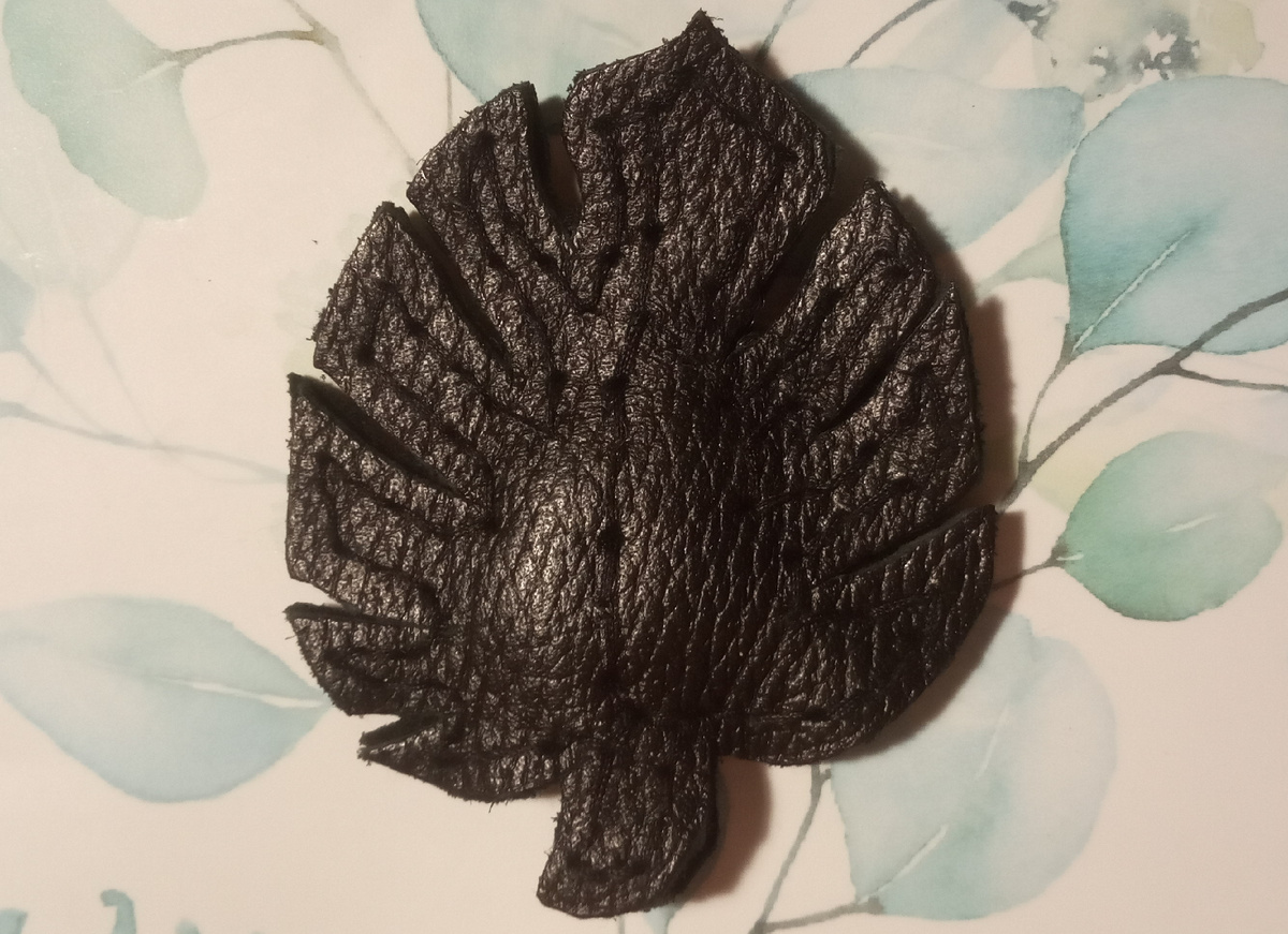 Привет всем. Вчера "нашло вдохновение" сделать из обрезков натуральной кожи (которых у меня два мешка - чёрного и серого цветов) лист монстеры. Почему-то нравится это растение, связанные с ним ассоциации и его символика - защита и процветание. Изначально листик из толстой чёрной кожи задумывался как брелок. В результате решила, что из него получится интересный кулон, так что поместила на кожаный шнурок. Действительно, смотрится стильно и оригинально. Я осталась довольна. На своём "рукодельном" канале сделала небольшой МК на этот кулон: Напомню, что на днях шили из натуральной кожи серого цвета собаку-брелок: На неё тоже есть МК: Творческих задумок и планов ещё больше, где бы взять на всё времени. ) Спасибо за внимание! А вам нравятся изделия из кожи?