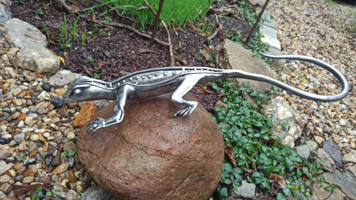 Новый житель зоопарка Кью😍 Правда, уже собирается ехать к счастливой хозяйке, но мы можем сковать ещё, и ещё... и ёще!!! Заказывайте! У ящириц хороший символизм, и они к удаче! https://qgarden.ru/product/kovanaya-yascherica