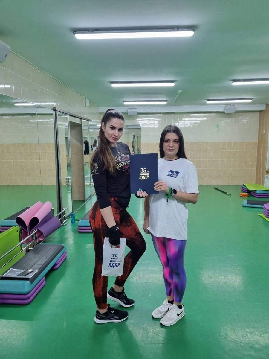 В этот праздничный день активист нашего отделения, Наталья Каменская, лично поздравила фитнес-тренера Элину Андреевну Лушеву.