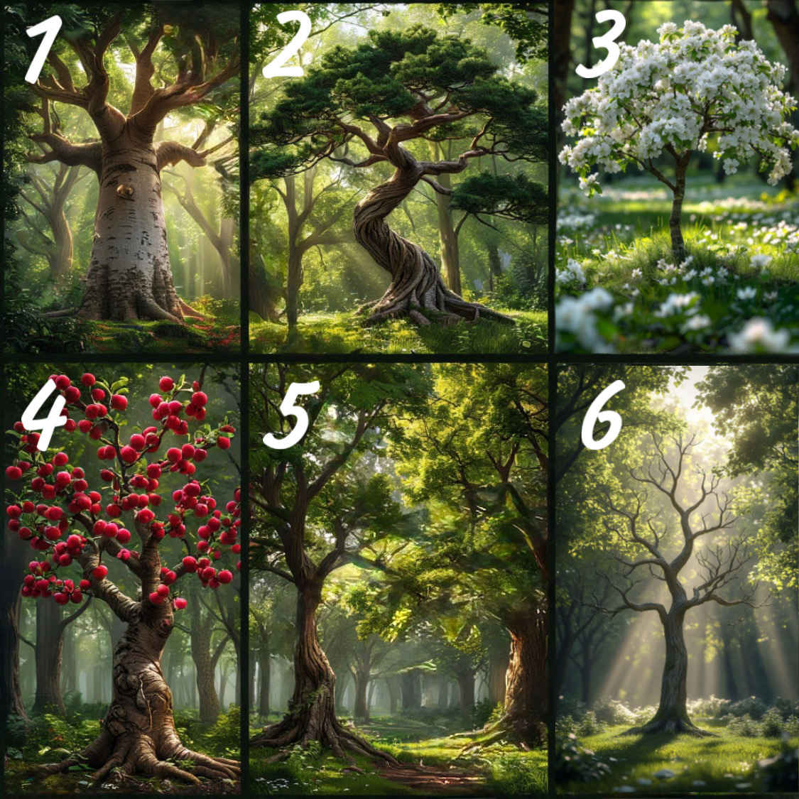Перед вами шесть картинок, на которых изображены 6 разных деревьев. Выберите ту, которая, по вашему мнению, больше всего вам подходит. А когда выберите, читайте описание ниже.