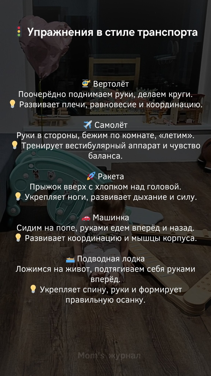 Малыши редко сидят на месте — и это прекрасно! А чтобы направить эту энергию в пользу, попробуйте превратить движения в игру. Через игру ребёнку проще пробовать новые движения. Уже была подборка упражнений в стиле животных, сегодня покажу в стиле транспорта.