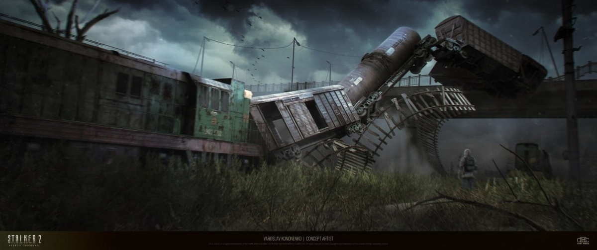 ☢️ Подборка концепт-артов от 2D/3D-художника S.T.A.L.K.E.R. 2: Сердце Чернобыля, Ярослава Кононенко. - Гравитационная аномалия на ЖД путях; - Концепт бара; - Монолитовский тотем; - Нейропрограматор; - Холл объекта "Фундамент"; - Сгоревший хутор; - Аномалия "Ведьмин круг".