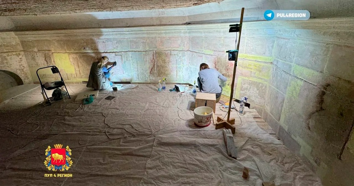 🖌️На сценах Свяцкага замка рэстаўратары знайшлі 200-гадовыя малюнкі