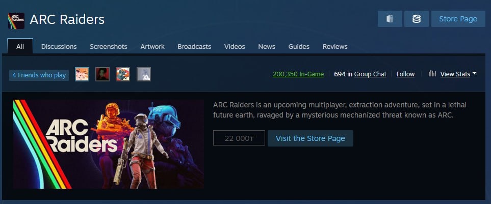 Онлайн Arc Raiders пробил 200 тысяч игроков в Steam. Это уже больше, чем во время любого из тестов игры — и приближается к пику бесплатной The Finals (242 тысячи).