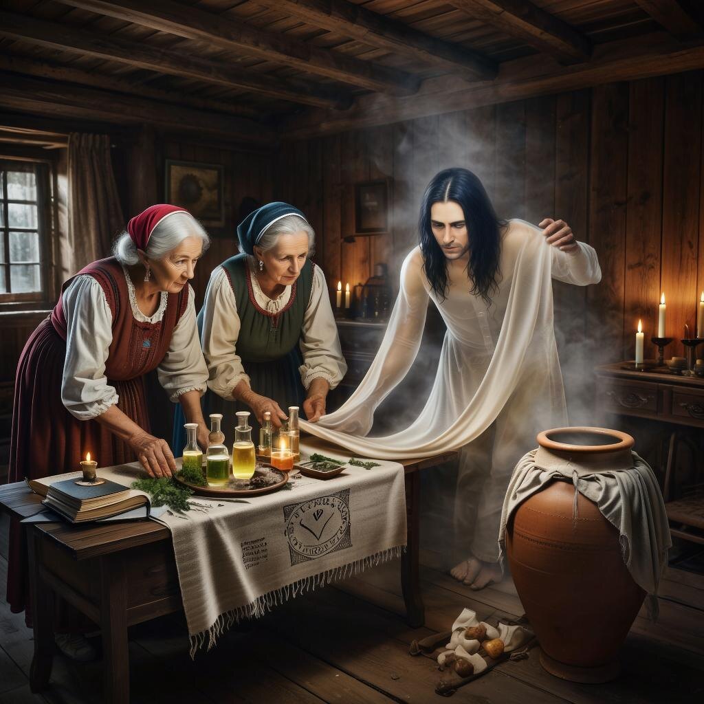 Вŏ книге И.С. Ястребова «Обычаи и пѣсни турецкихъ сербовъ» (1886) помещена крайне любопытная пеƈня, исполняемая на Бадняк: Шчо ми беjе до две мили сестри, Ми немаjе ни татко, ни маjка, Ни ми брата, ни ми братучеда. Одидоje долу в рамко поле, Пресекоje дрво ћипирово, И зедоje камењ становити. Си дојдоje дома на дворови, Ћа ми правит своји мила брата: Снога клале дрво ћипирово. Глава клале сурова-на земja, Крв ми клале црвено-но вино, Перчук клале тура ибришима, Веђи клале морски пиjавици, Клепалици ластовечки криља, Очи клале од црно-но гројзе. Со сем ми го брата суградије, Ток се чудит до две мили сестри. - «Ај ти тебе, наши мили брате! Со сем ми те тебе доградивме, Уста немаш да ни проговориш». Тога Богу му се дожалило, И ми прати анђел' од небеси, Душа даде, брата и́м го крена. Го крстиjе брата Димитрија, Им жиува триесет години. Многу сестри ми се зарадваjе: - «Ајде, брате, дате завршиме!» А брат нећет ди ми го завршит. Ми станаjе до две мили сестри, Ми станаjе, ми го завршије. От