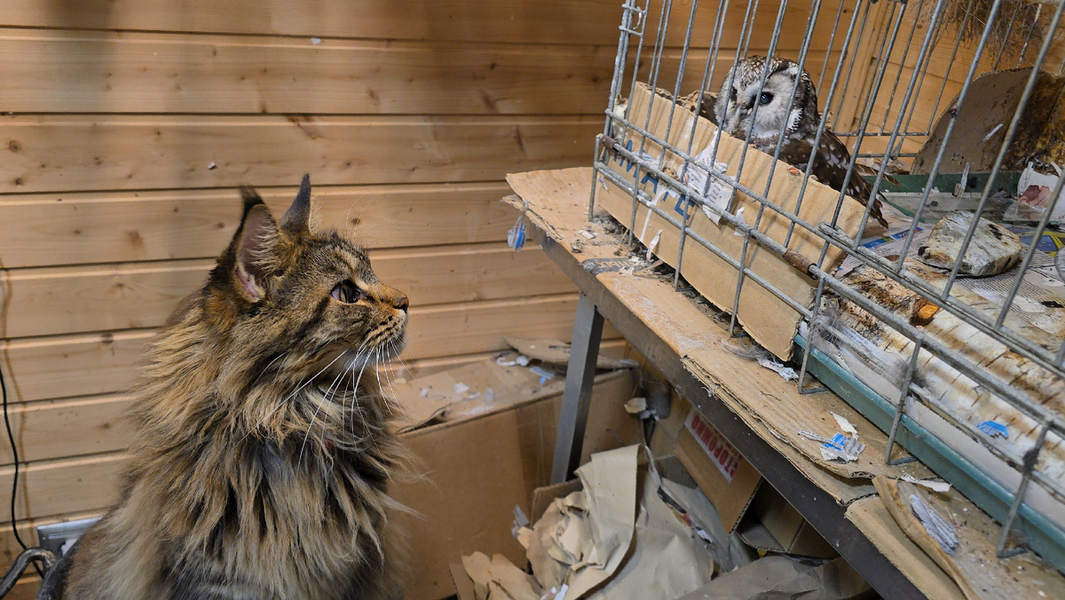 Кошка Морошка хочет стырить вкусное у совы Чучундрия. Совы сплюшки следят за мной. Пёс Кубик в лесу