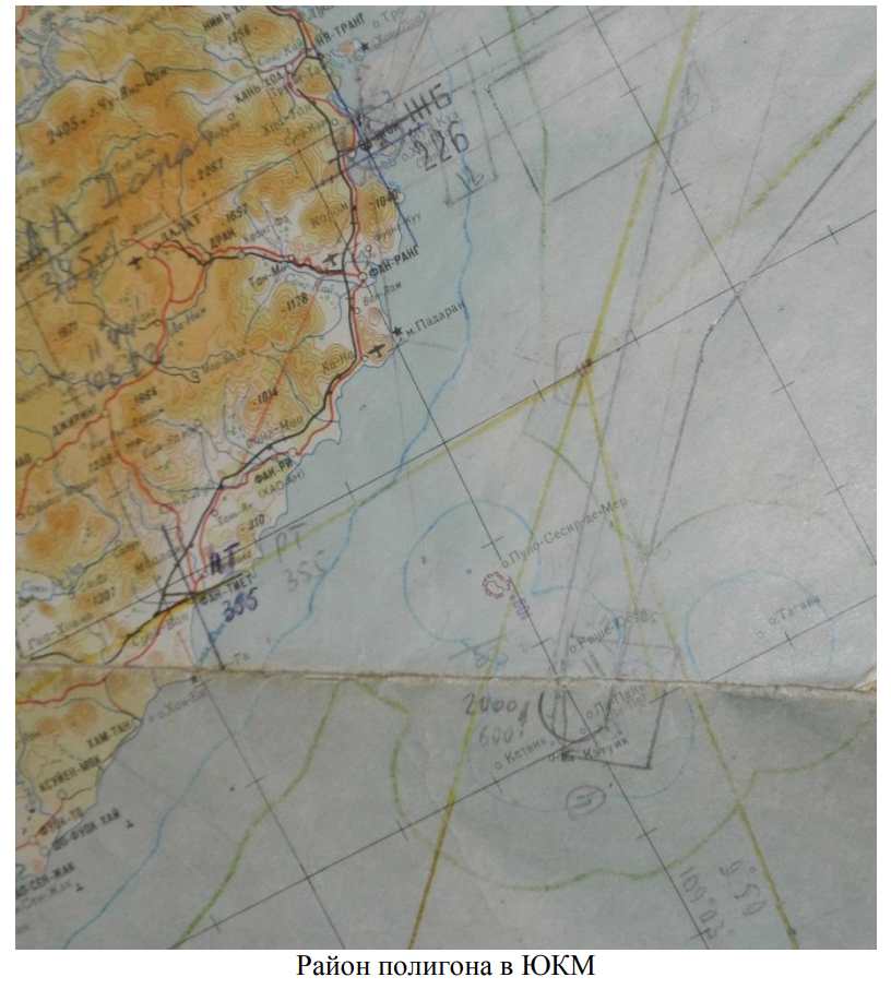 В понедельник 07.01 летал днем с Андрияновым вывозные полеты по БК (4 пол). Потом на б/м самостоятельно с прицелом ОПБ-1. Был проверен в практике навигаци и БП штурманом 1АЭ капитаном В.Безруковым. Нам выделили риф в море для производства бомбометаний из группы островов Кэтуик с координатами: 109°03; ВД, 9°05; СШ. Начали тренировки днем и ночью. Риф во время отлива обнажался, его было хорошо видно. Во время прилива он был еле заметен. Вьетнамские рыбаки прознали о том, что на рифе производится бомбометание и стали там дежурить. Мы бомбим (хотя и практическими бомбами П-50т), они собирают глушеную рыбу. Поэтому мы сначала проходили на предельно малой высоте (60м днем, 200м ночью) для просмотра акватории на отсутствие вьетнамских джонок, а затем производили бомбометание. В среду 09.01 летали на б/м уже ночью в составе отряда.