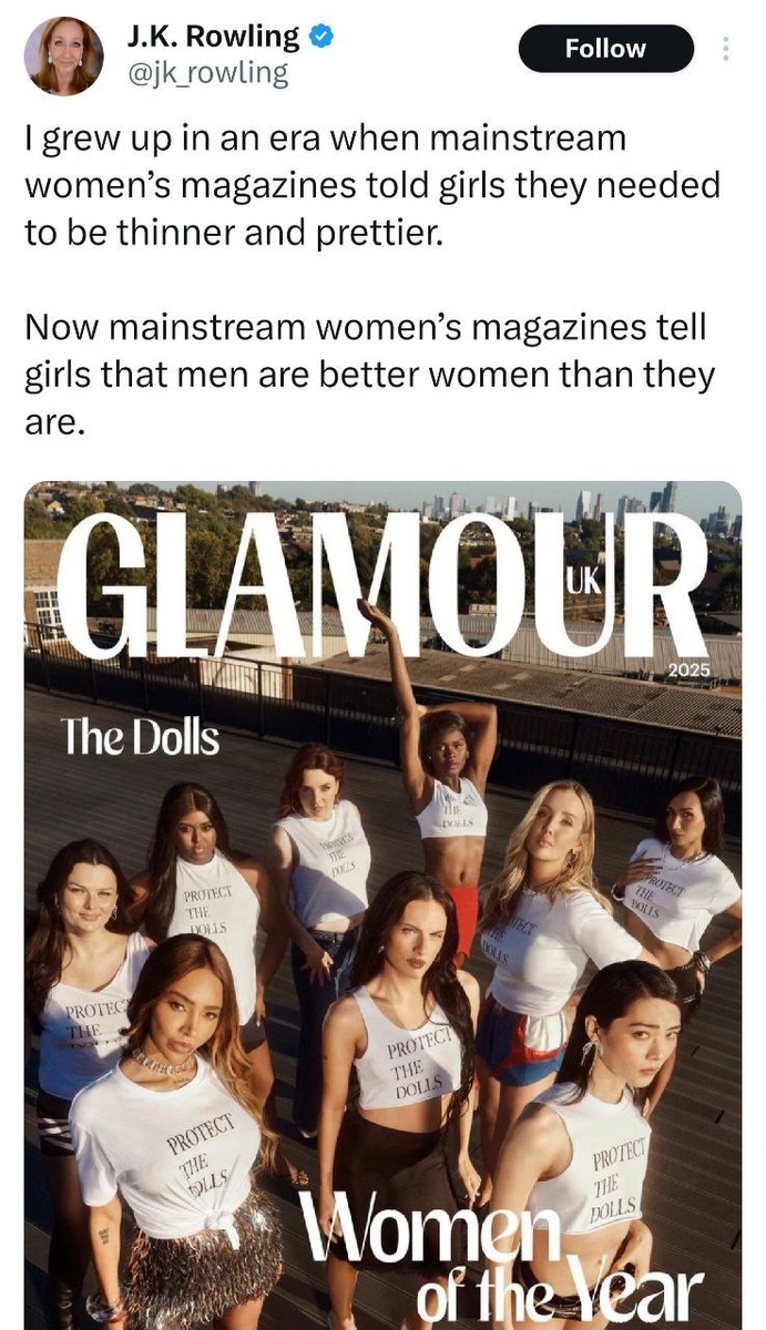 ♀️ J.K. Rowling takes aim at Glamour mag for putting 9 'dolls' on their cover