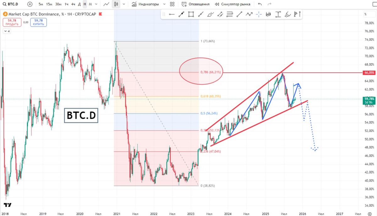 📉 Биткоин Доминация (BTC.D) - ожидания на основе технического анализа