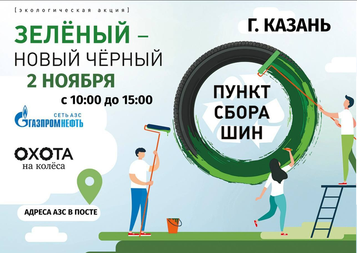 • Минская, 1А ❗️Важно: сдать шины могут ТОЛЬКО физические лица (не более двух комплектов) Юридическим лицам обращаться по номеру: +78432390203 Акция пройдет в рамках экологического проекта «Зеленый – новый черный» от АЗС «Газпромнефть» и проекта «Охота на колеса». ♻️Собранные шины отправятся на переработку на завод ООО «Кряж+», а полученный гранулят - резиновая крошка - пойдет на изготовление покрытий для спортивных площадок. Постоянные точки сбора шин для физ.лиц от «УК «ПЖКХ»: с 7 до 19 ч каждый день по ул.Васильченко, 6 и ул.Родина, 45 Расскажите об акции друзьям, соседям, коллегам 🤗 #крошкашина #экологичноказань